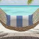 Een klassieke breedverticale cabaan of een wringend stripe-ontwerp in tourmaline blauw (een subtiele schaduw van lichtgrijs blauw) en wit. Ideaal voor zomerentertainen op het geduld of dek.