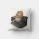 Een nieuwe kussen met een "couchaardappel" met menselijke kenmerken, gekleed in een gymkraan, die de televisie ver van zijn lederen bank controleert. Perfect cadeau voor de couchaardappel in je leven!