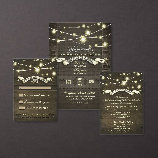 country rustiek bewaar de datum met twinkle lampje aankondigingskaart