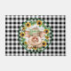 Een provinciedeur in een zwarte en witte cheque met een stutboerderij die in zonnebloemen rondcirkelde