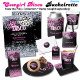 Pak je partijbal, je zilveren cowgirl pet en laarzen en een paar rolbladen terwijl je klaar bent om je te onthouden voor een vrijgezellenfeest. Deze uitnodiging kan ook worden gebruikt voor het evenement van het zoete disco-feest, het verjaardagscentrum of een ander cowgirl over disco-feesten. Roze zwarte en zilveren glitterthema met koe cowgirl pet.
