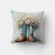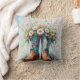 cowgirl gooi kussen met cowboylaarzen en een boeket bloemen. De keerzijde is aanpasbaar (voeg de tekst of het monogram van uw keuze toe).