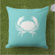 CRAB / crabby blauwgroen zee blauw kussen Ontwerp door artiest Sandy Closs Outdoor kussens deel van de oceaan thema decor CRAB WHITE op blauwgroen blauw kussen