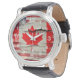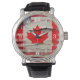 Perfect polshorloge voor een Canadese Amerikaan met een print van de Amerikaanse vlag gefuseerd met de Canadese vlag op rustiek hout met verf afpellen.