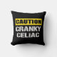 Geweldige kussen met een waarschuwingsbord dat WAARSCHUWING CRANKY COELIAC leest. Geweldig cadeau idee voor iedereen met coeliakie.