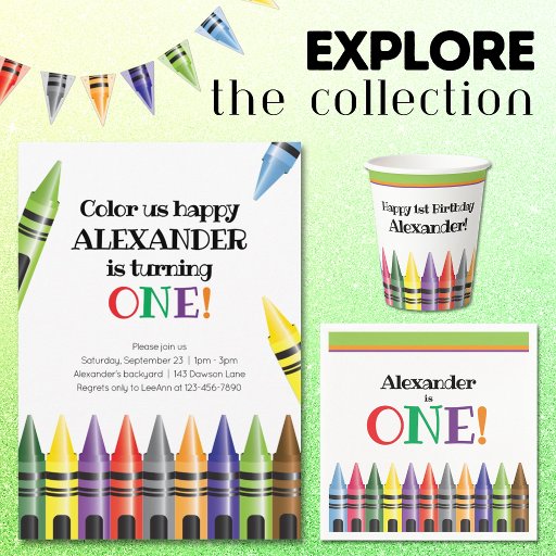 Colorful Crayon First BirthdayOntworpen door Dena Macdonald