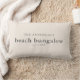 Een casual strand met een crèmestrand bungalow gooit kussens met je familienaam en vastgestelde datum. Ideaal voor je bungalow, strandhuis of meerhuis.