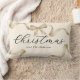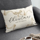 Kerstvakantie kussen met een prachtige crème achtergrond, prachtige gouden waterverf lint en boog, het woord "kerst" in een elegant lettertype, en uw familienaam.