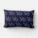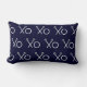 Uniek lacrosse kussen met lax stick xoxo design patroon op het veld van marineblauw.