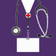 Unieke verpleegstersschool afstudeerkaart met paarse ziekenhuiskleding, een stethoscoop en een grappige illustratie van een Zwitsers zakmes. Om te personaliseren voor verpleegster, bewerk de tekst om haar of zijn naam toe te voegen.