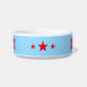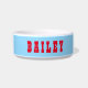 Creëer Uw eigen aangepaste, gepersonaliseerde, gedurfde kerst rood rustiek western script / typografie aangepaste naam aan de voor- en achterkant, met drie sterren in het midden en lichtblauwe achtergrond, keramiek, huisdier hond hondenpuppy kitten voedsel kom. Voer eenvoudig de naam van uw huisdier / jouw tekst in, om aan te passen. Geweldig voor verjaardagen, kerst, feestdagen, nieuwe jaren en meer, voor eigenaren van huisdieren / katten, vrienden en familie.