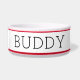 Ontwerp uw eigen schaal voor huisdieren met verschillende lettertypen en kies uw eigen kleuren voor de bovenste en onderste streep, tekst en achtergrond om een kat- of hondenkom te maken die overeenkomt met uw decor of dierlijk uiterlijk.