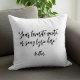 Creëer uw eigen aangepaste offerte gooi kussen. Beschikt over minimalistische kalligrafie.
