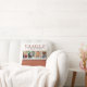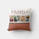 Een modern fotocollage kussen met 'familie is alles' typografie.Personaliseer je met vier favoriete afbeeldingen en namen.