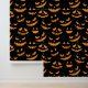 Creëer een speelmuur in uw huis deze Halloween met deze griezelige pompoen gezichten patterned behang in sinaasappel en zwart