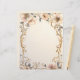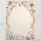 Een mooie krans met stoffige crème en roze bloemetjes met gouden ranken op een bleke perkamentachtergrond maakt dit briefpapier ideaal voor al uw correspondentie. De achterkant is effen, in dezelfde bleke perkamentkleur als aan de voorkant.