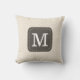 Trendy en stijlvolle beige polka dots kussen met aanpasbaar monogram op bruine banner.