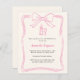 Een zachte crème, beige achtergrondkleur. Versierd met een roze handgetekende boog, lijst een flesje Prosecco en een fluit. Personaliseer en voeg uw namen en gegevens toe. 1 vel = 1 uitnodiging bedrukt rand tot rand.