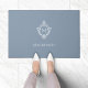 Crest Dusty Blue Monogram Elegant Initial and Name Deurmat