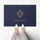 Crest Monogram Navy Blue Faux Gold Elegant Initiaa Deurmat