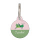 Dit huisdier ID label is voorzien van een vrolijke groene cricket set tegen een zacht roze en salie groene achtergrond, een aanvulling op de speelse natuur van het label. Het gebied voor personaliseren is duidelijk aangewezen, klaar om te worden aangepast met de naam van een huisdier in een vloeiend, gemakkelijk te lezen lettertype. Het label combineert luchthartige charme met praktisch nut, waardoor een huisdier in stijl kan worden herkend.