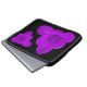 Deze geweldige laptoptas bevat een foto van een kroonbloem die digitaal is gewijzigd door een filter toe te voegen om de bloem paars te draaien. Er zijn twee van deze bloemen, één ondersteboven en de andere de juiste weg naar boven. De bloemen staan op een zwarte achtergrond.