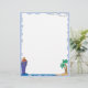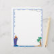 Deze vacation letterhead heeft een lichtblauwe grens, een eiland met palmbomen in de rechterbenedenhoek, en een groot blauw cruiseschip in de linkeronderhoek.