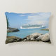Veilig op zee verankerd, ver van de rotsen en de riffen, rust een vrijheidsklasse cruiseschip op het particuliere tropische eiland Coco Cay van de cruise line in de Bahama's.