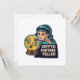 Een cartoonesk afbeelding van een psychisch staren in een kristallen bol versierd met cryptocurrency-symbolen, haar expressie een mix van concentratie en amusement terwijl ze de onvoorspelbare schommelingen van cryptocurrency-prijzen probeert te voorspellen. Dit vangt de speculatieve en onvoorspelbare natuur van de crypto-markt met humor.