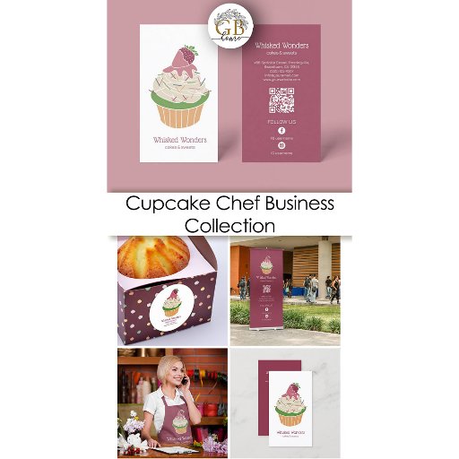 Elevate your Cupcake Bakery Chef business with our charming and delectable design. This exclusive design showcases luscious cupcakes adorned with vibrant strawberries, embodying the essence of your sweet creations. Customize it with your brand name and memorable slogan. Designed by Golden Bloom Home, this original and distinctive design perfectly captures the artistry of your culinary endeavors, leaving a lasting impression on clients and colleagues alike.