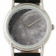 Curve van de maan met een afbeelding van de maan tegen een zwarte hemel. De buitencirkel geeft tijdtoename. Een perfect horloge voor astronomen of astronomieliefhebbers.