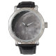 Curve van de maan met een afbeelding van de maan tegen een zwarte hemel. De buitencirkel geeft tijdtoename. Een perfect horloge voor astronomen of astronomieliefhebbers.