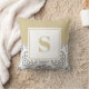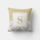 Een chique en funky douane gooit kussen. Beige monogram in een dubbel wit blok. Op de achtergrond is beige op de bovenste helft en een grijs en wit rond geometrisch patroon op de onderkant. Fun en fantastisch!