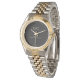 Aangepast zilveren en gouden horloge met een zwart en gouden klokgezicht met een naam en initialen.