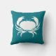 Custom CRAB WIT op dark aqua blauwgroen blauw Kussen