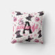 This custom pink and black Halloween throw pillow with a monogram features a cute pattern of pink ghosts, black dogs in witch hats, flying bats, stars, bows, pumpkins, and moons. Add a name and initial to make it your own. The soft color palette adds a girly twist to spooky season, perfect for Halloween party decor, haunted nursery accents, or any cozy fall corner. Ideal for dog moms, kids’ rooms, or kawaii lovers.