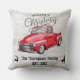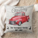 Elegant grijs hout en rode vrachtwagen, familienaam design gooit kussens voor het kerstseizoen. Dit ontwerp ziet er robuust en trendy uit met een coole rode vrachtwagen en mooie tekst. Een mooi contrastontwerp voor kerstfeest.