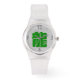 Groen ideogram van de Draak op papier gesneden illustratie als achtergrond. U kunt de kleur van het ideogram eenvoudig wijzigen door op de knop Aanpassen te klikken. Ontwerp op Silicone Strap Clear horloge met jonge stijlnummers. Perfect voor Chinees Nieuwjaar van de Draak of Verjaardag (mensen geboren in Draak Jaar).