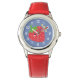 Schattige cartoon aardbei met smiley gezicht op blauw en rood gepersonaliseerd kind horloge met gemakkelijk te lezen nummers.
