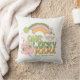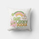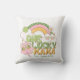 Decorate your home with this One Lucky Mama throw pillow featuring a vibrant groovy rainbow and cheerful clovers. This personalized St Patricks Day pillow is a fun addition to your living room holiday decor. Add a name for a unique Irish gift that brings good luck energy and vibrant retro charm to your couch. Perfect for moms who love festive home accents and vibrant green holiday style.