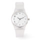 Custom Photo Art Text Mannen Clear Silicone Strap Horloge met Clock Face Numbers. Voeg kunst, een foto of kleur toe achter het afbeelding van de wijzerplaat, of houd de look. Bewerk het in het werkbalkontwerp als de grootte van het afbeelding moet worden aangepast.