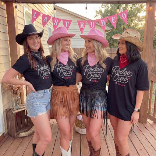 Celebrate your Last Rodeo in style with the Rodeo Crew t-shirt — a bold western-inspired piece made for bachelorette parties and unforgettable weekends with your girls. Featuring the signature Rodeo Crew rope-style lettering, this shirt is designed to stand out while staying easy to wear and style. Add a personal touch by customizing it with a name, making each shirt unique for every member of the bride crew. Perfect for a bachelorette party, western-themed celebration, or girls’ trip, this t-shirt works great for group photos, party nights, and keepsake memories long after the weekend is over. Personalization available — add a name under the design for a custom look made just for your crew.