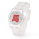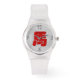 rood ideogram van het paard op papier gesneden illustratie als achtergrond. U kunt de kleur van het ideogram eenvoudig wijzigen door op de knop Aanpassen te klikken. Ontwerp op Silicone Strap Clear horloge met jonge stijlnummers. Perfect voor Chinees nieuwjaar van het paard of verjaardag (mensen geboren in Paardenjaar).