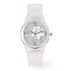 wit ideogram van de os op originele tekening als achtergrond. U kunt eenvoudig het jaar en de kleur van het ideogram wijzigen door op de knop Aanpassen te klikken. Ontwerp op Silicone Strap Clear horloge met jonge stijlnummers. Perfect voor Chinees Nieuwjaar van de os of verjaardag (mensen geboren in Ox Jaar).