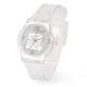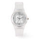 wit ideogram van de Rat op een leuke "papier-cut" illustratie als achtergrond. U kunt eenvoudig het jaar en de kleur van het ideogram wijzigen door op de knop Aanpassen te klikken. Ontwerp op Silicone Strap Clear horloge met jonge stijlnummers. Perfect voor Chinees Nieuwjaar van de Rat of Verjaardag (mensen geboren in Rat Jaar).
