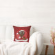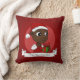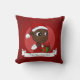 Een gooikussens met een afbeelding van een schattig glimlachend Afrikaans-Amerikaans baby met een kerstcadeautje en een kerstcadeautje met een pet van de kerstman; in een rode cirkel op een rode achtergrond, een ontwerp van de feestdagen met een bewerkbare tekst voor jouw naam of een bericht