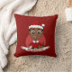 Drog kussen met een afbeelding van een schattig glimlachend Afrikaans-Amerikaans jongetje met kort zwart haar draagt de jongen een Sinterklusje met een rood pet en met een cadeau; in een rode cirkel op een rode achtergrond, een ontwerp van kerstmis met een bewerkbare tekst-sjabloon voor jouw naam of een bericht