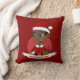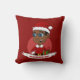 Drog kussens met een afbeelding van een schattige, lachende Afrikaanse Amerikaanse jongen met een kort zwart haar en een bril, draagt de jongen een kerstmankostuum met een rood pet en met een cadeau; in een rode cirkel op een rode achtergrond, een ontwerp met kerstfeestdagen met een bewerkbare sjabloon voor jouw naam of een bericht