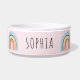 Deze schattige hondenkom heeft een schattige regenboog met een roze achtergrond en ruimte om een naam toe te voegen in eenvoudige typografie. Het perfecte moderne meisjesontwerp voor elke regenboogminnaar, een geweldige manier om een nieuw huisdier te verwelkomen!