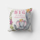 Geef een persoonlijk tintje aan deze schattige en moderne gooikussens met een mamma- en baby-olifant met roze boho-floralen en een variatie van het trendy sentiment "Dream big little" met haar eigen naam op een witgewassen houten achtergrond. Dit is het perfecte decor voor je meisje of haar slaapkamer.
